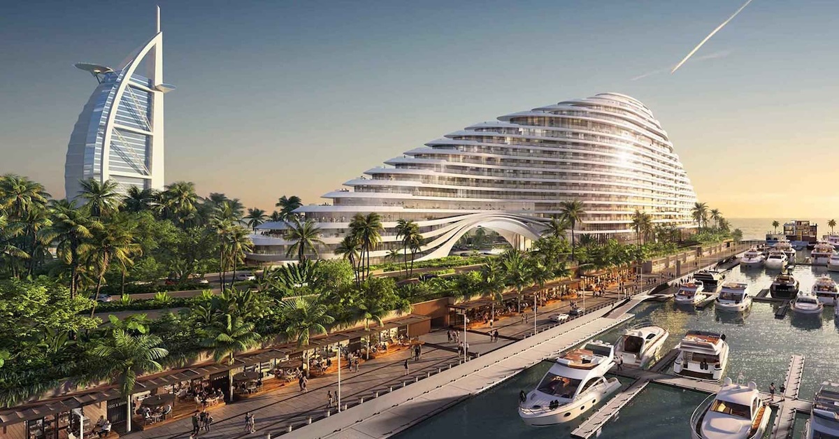 The final part of the renowned ‘ocean trilogy’ that includes the iconic Burj Al Arab (shaped like a sail) and Jumeirah Beach Hotel (shaped like a breaking wave), this stunning luxury property has all the hallmarks of a luxury yacht, berthed between its siblings.